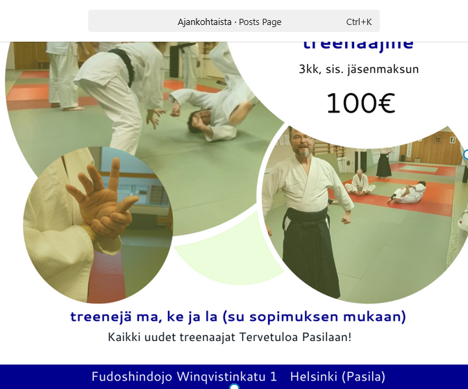 Daitoryu Aikijujutsu Soden wasa – Kesäleiri 28.7.–3.8.2025! Daitoryu Aikijujutsu Soden Waza – Summer seminar July 28 – August 3, 2025 – Shihan Jyrki Rytilä (7th Dan, Kyoju Dairi) Lähde mukaan syventämään taitojasi perinteisen Daitoryu Aikijujutsun parissa! Leirin aikana harjoitellaan Soden wasa -tekniikoita tehokkaassa mutta rennossa ilmapiirissä – sopii niin pidempään harrastaneille kuin tekniikkaan tutustuville. Led …
